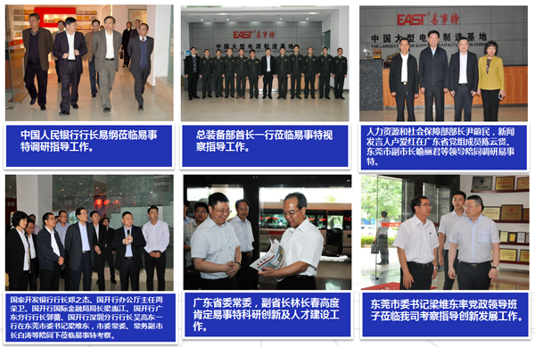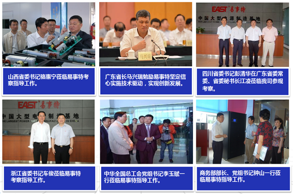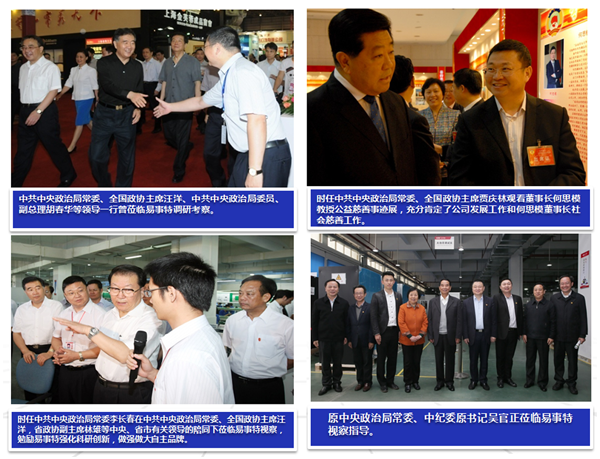 长期以来,各级领导人和社会各界人士悉心关注支持易事特发展工作。党和国家领导人汪洋、贾庆林、李长春、吴官正;胡春华、李强、李鸿忠、黄坤明、蔡奇、刘延东、李源潮、马凯、刘奇葆;陈昌智、张宝文、马培华、成思危以及各省(市、自治区)相关领导先后莅临考察和指导。